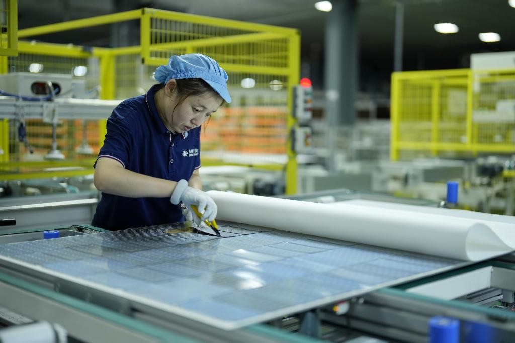 資料圖為河北省玉田縣一家光伏設備生產企業的工人在車間內工作。新華社圖片