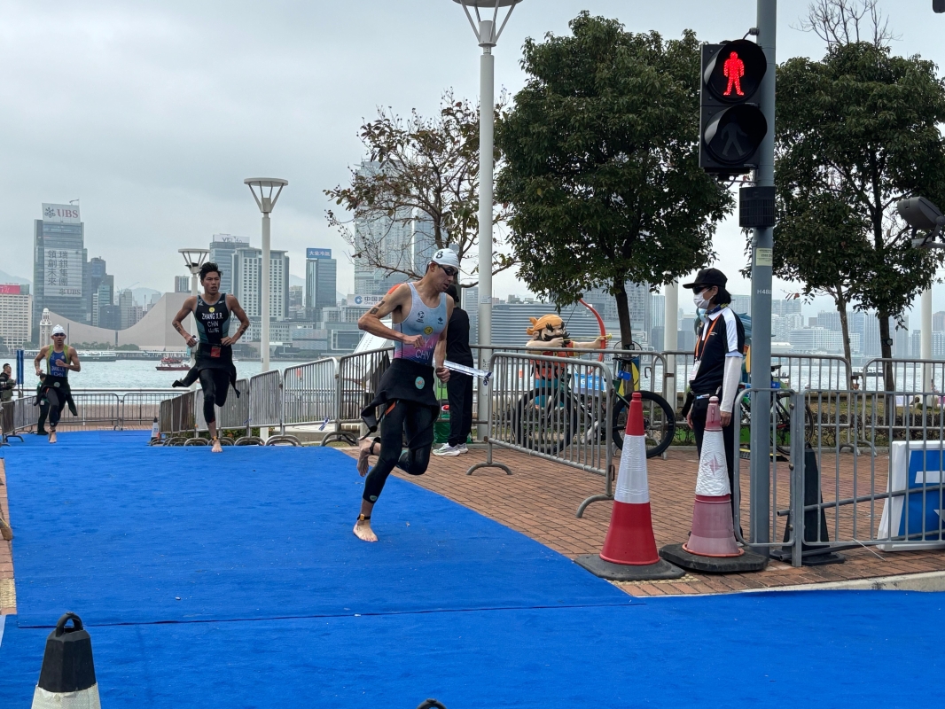 據報道,此次賽事是首 次在香港舉行鐵人三項混合接力賽,亦是首 次將部分賽道及觀眾席設在中環海濱活動空間內,方便市民觀賽。(完)