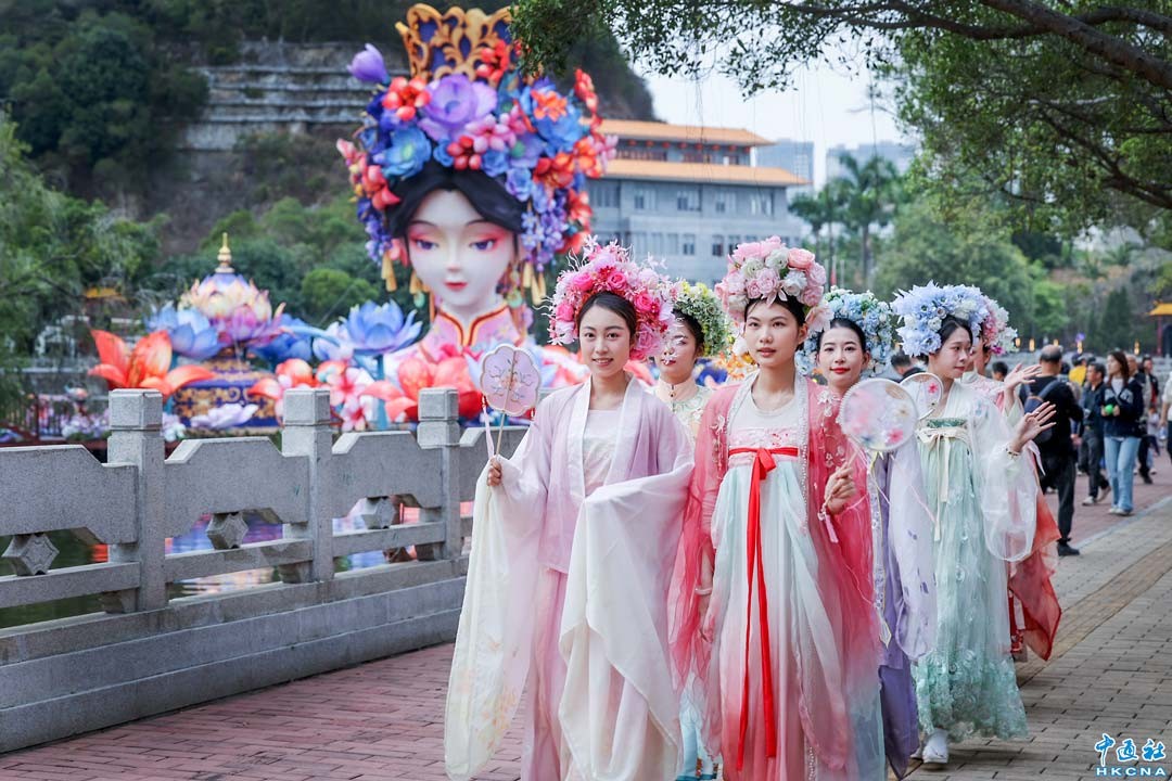 美輪美奐的“簪花女神”,在燈光映照下栩栩如生