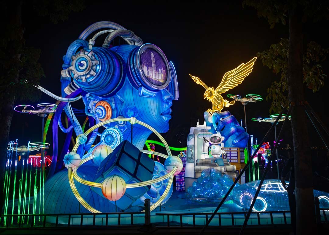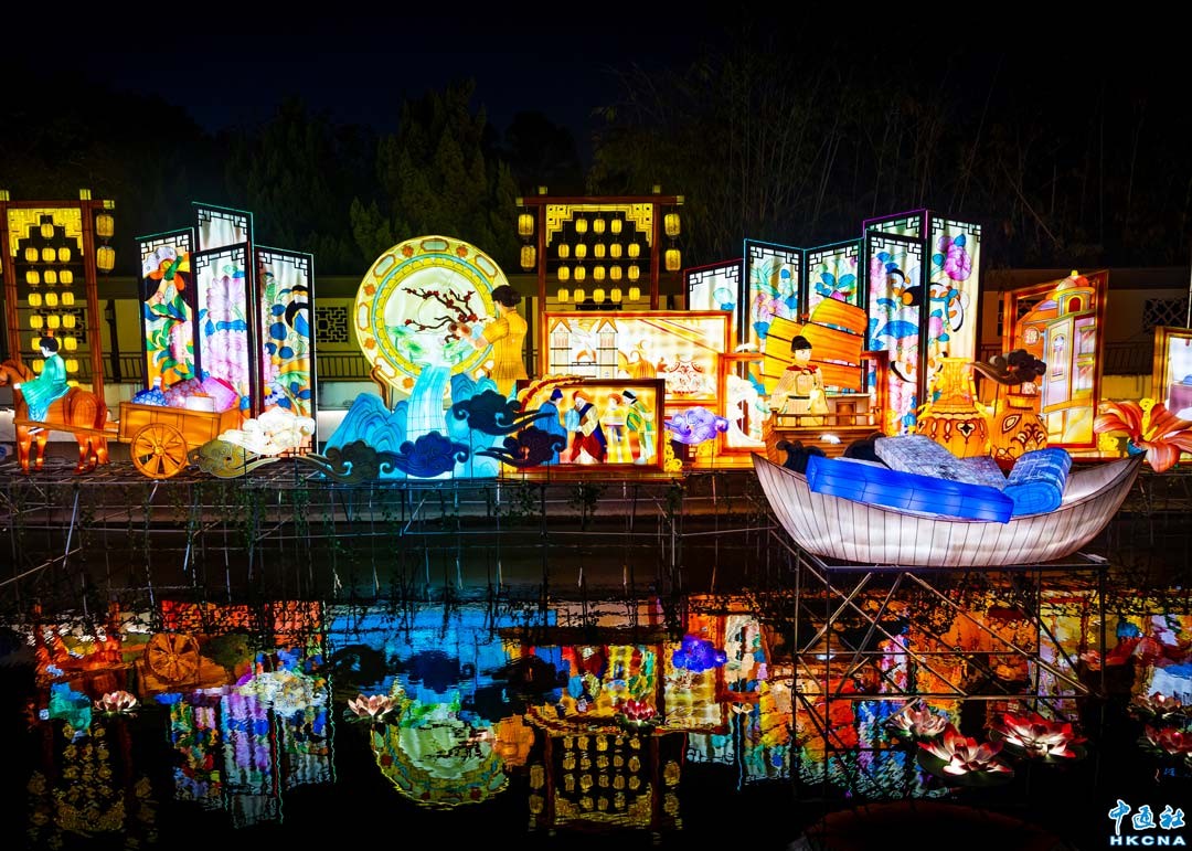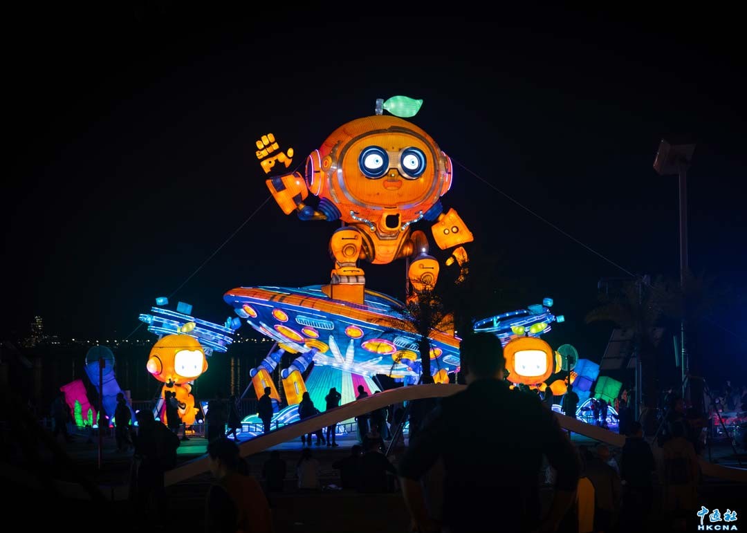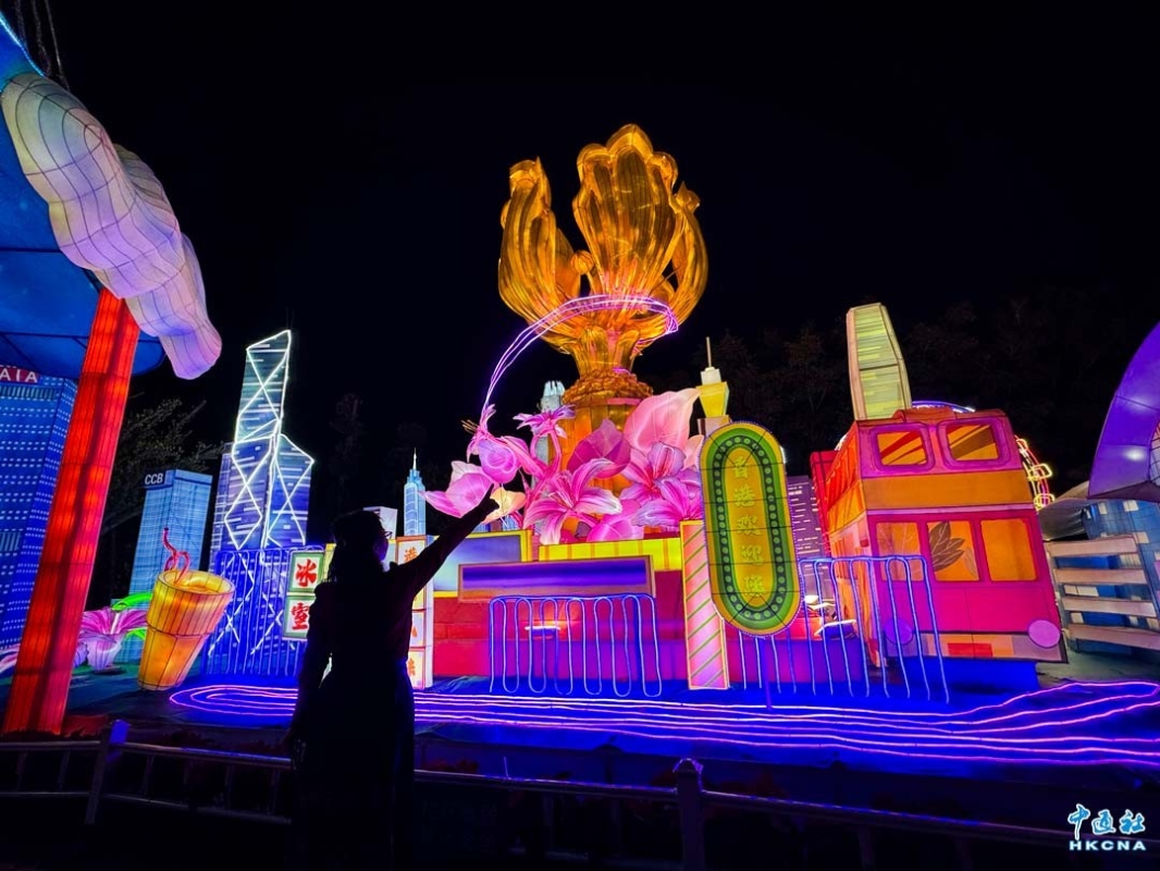 香港地標中銀大廈、金紫荊融入燈組,展現香港繁華的一面