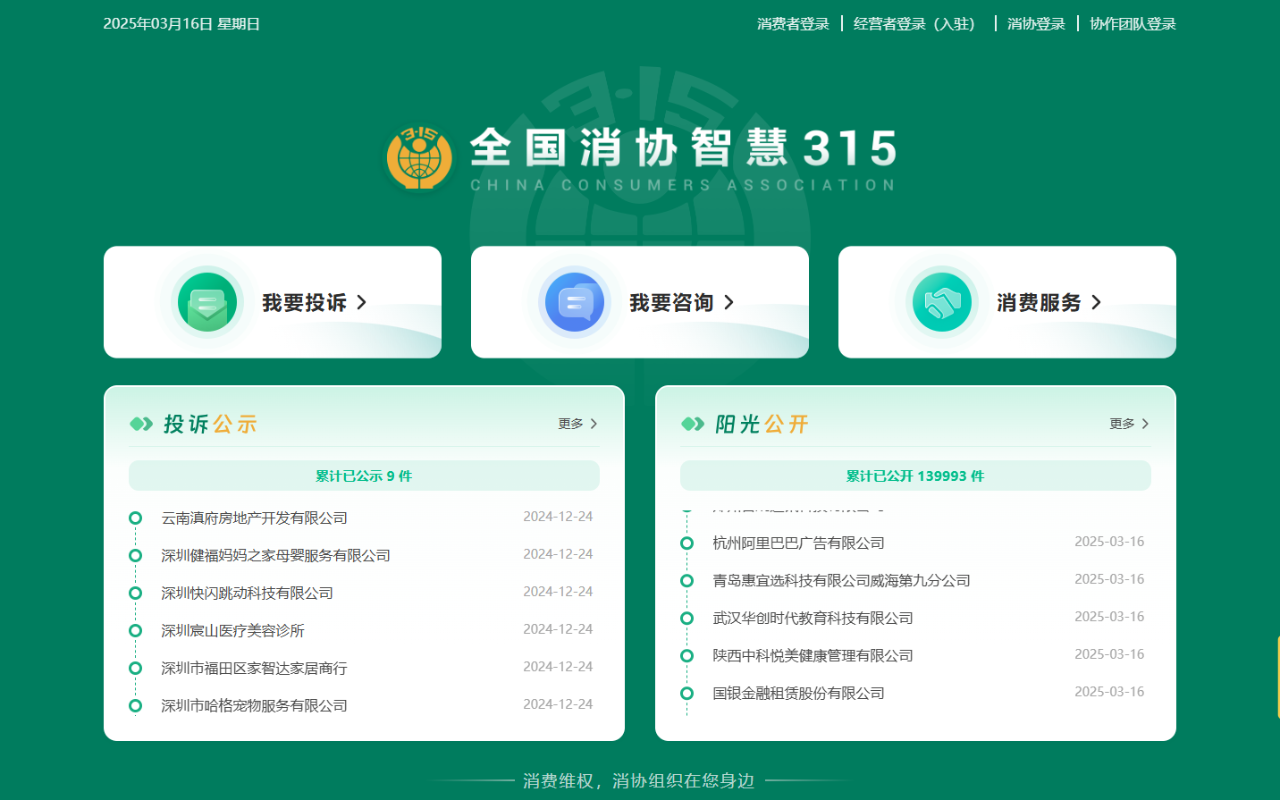 全國消協智慧315平台 圖源:網頁截圖