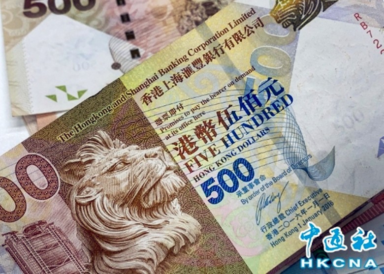 圖為500元面額港幣。香港中通社資料圖