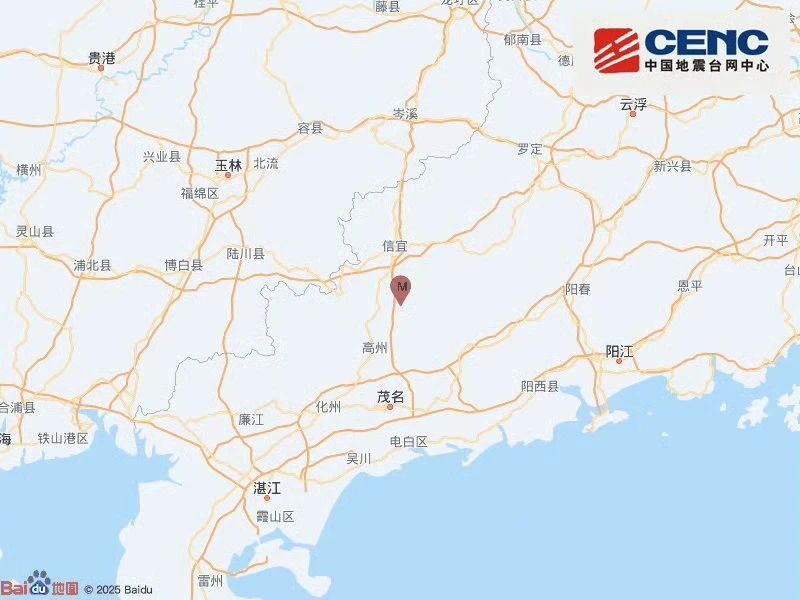 廣東茂名發生3級地震 圖自中國地震台網