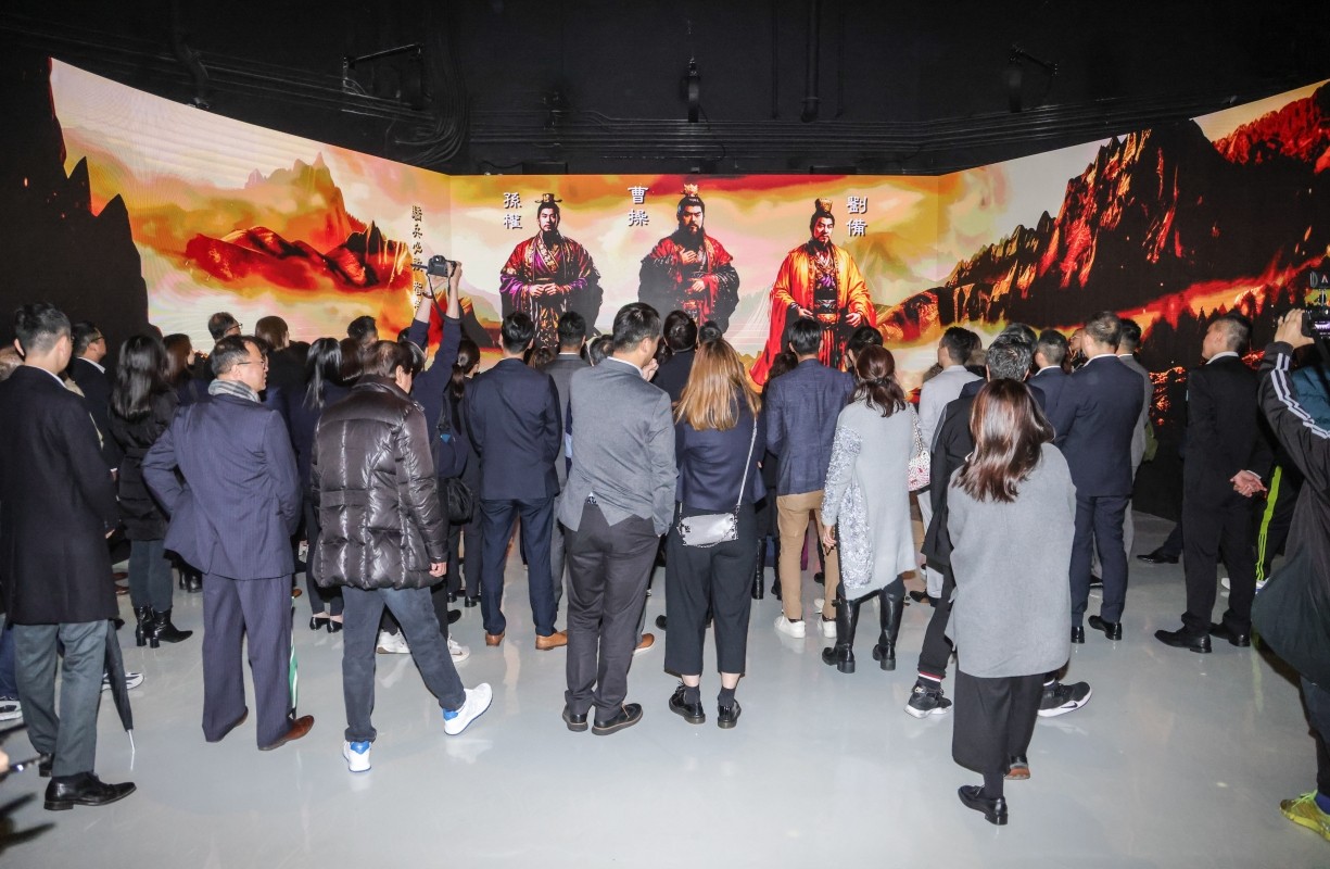 據悉,該館歷時三年籌備,總場館面積約兩萬呎,將科技與多媒體等技術相結合,打造出多項互動遊戲與精彩視覺體驗。例如,館內有270度巨型沉浸式投影,展示《三國演義》中經典戰場,讓遊客仿佛置身古戰場;除視覺特 效外,參觀人士亦可參與“攻城遊戲”,與三國歷史相交互,沉浸融入文化氛圍。