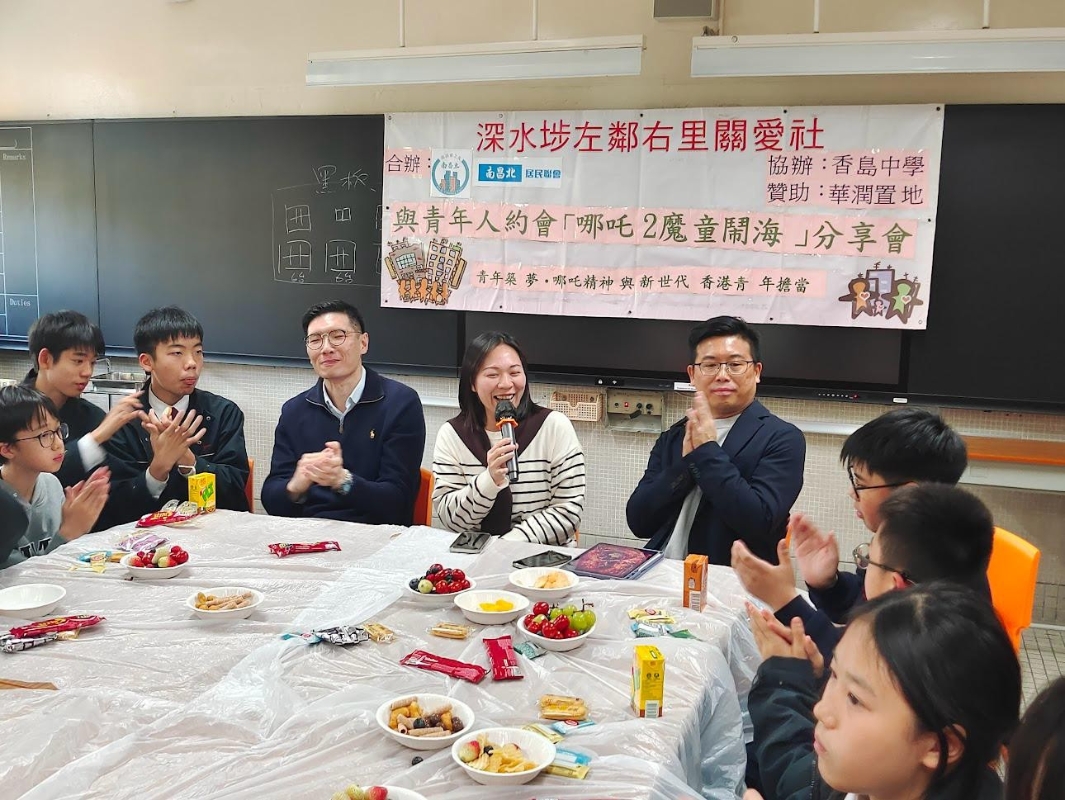 分享會上,學生們熱情發言。香島中學陳同學將哪吒的堅持與深水埗的社區精神聯繫起來,指出外界對此區的“貧窮”標籤忽略了其互助文化,“我們要用行動改變偏見”。李同學從電影中“蝦兵蟹將”看到“人民為本”的價值,與獅子山精神“同舟共濟”相呼應。黃同學則被哪吒父母的犧牲感動,聯繫到香港家庭的奉獻,感慨傳統倫理的當代意義。
