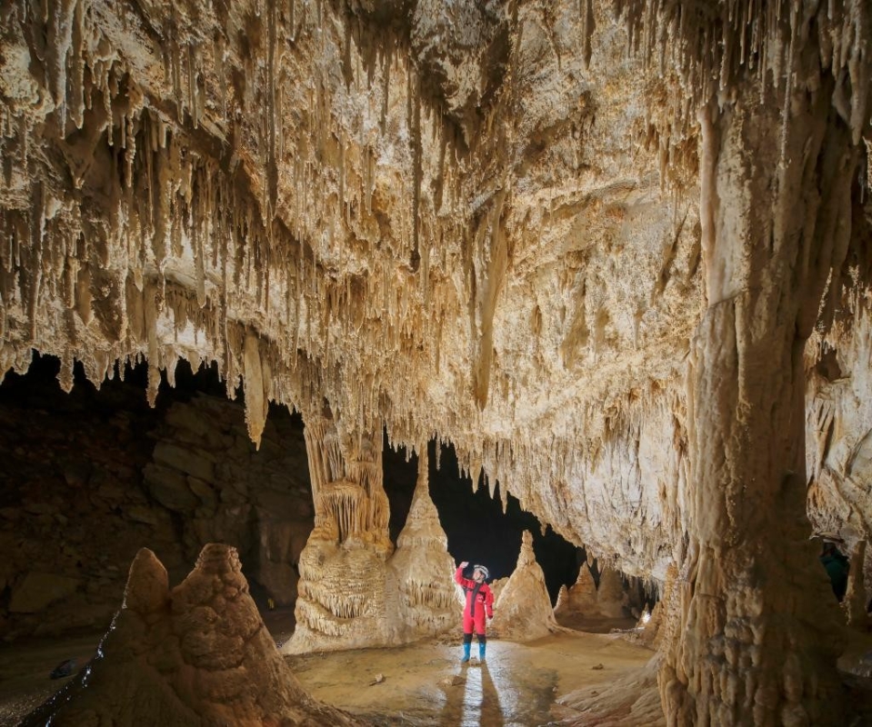 洞內有的穹頂高達100餘米,水滴在下墜過程中霧化成富含碳酸氫鈣的“氣溶膠”。在石笋、洞底凝結出千奇百態的石花、石枝、石葡萄、石珊瑚等,形成“霧化沉積”奇觀。