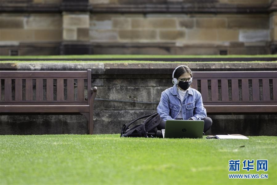 2020年9月10日,一名學生坐在澳大利亞悉尼大學校園的草坪上。新華社資料圖