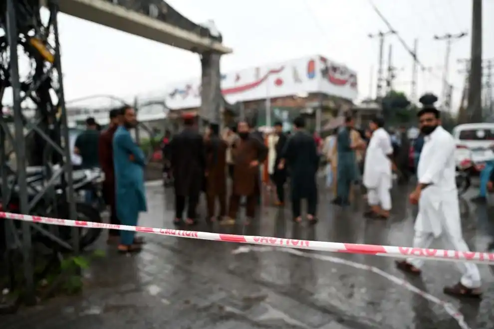 5月8日,人們聚集在巴基斯坦旁遮普省拉瓦爾品第的印度無人機襲擊現場附近。圖片來源:新華社