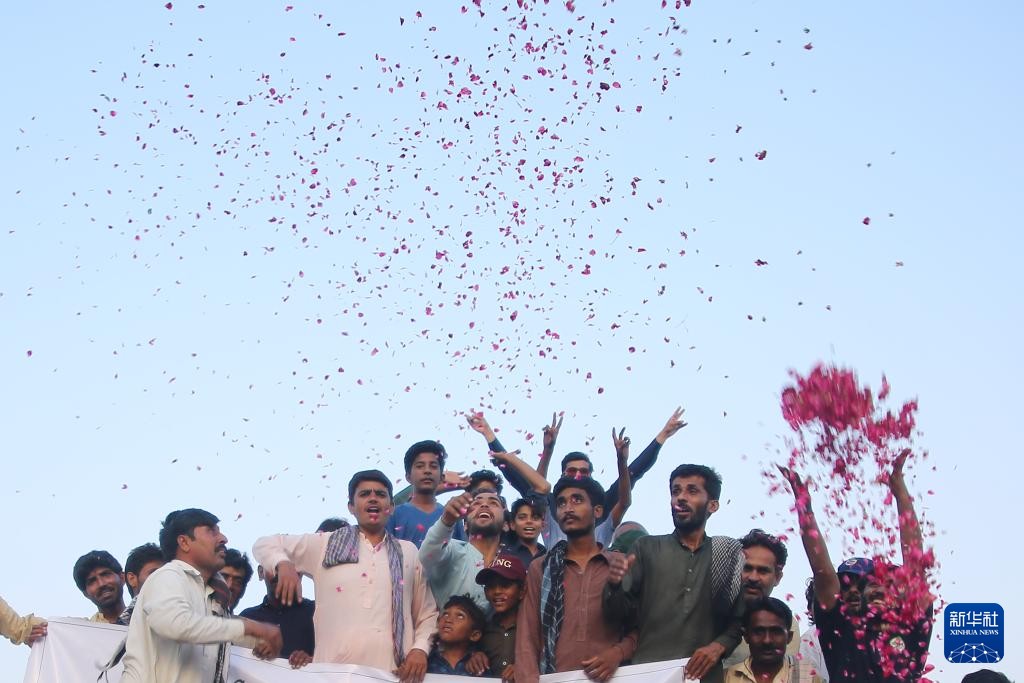 5月10日,在巴基斯坦東部旁遮普省木爾坦市,人們在巴基斯坦和印度宣布停火後慶祝。圖自新華社