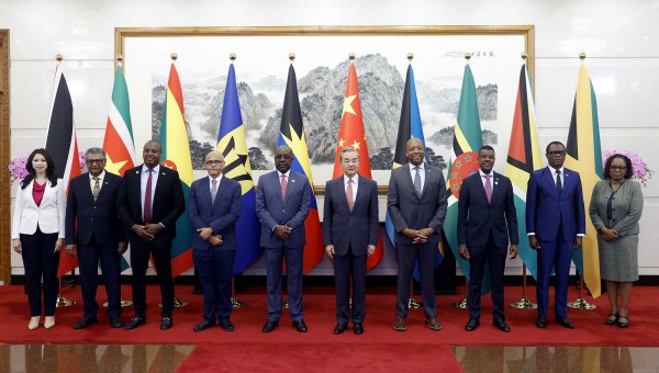 5月12日,王毅在北京集體會見來華出席中拉論壇第四屆部長級會議的安提瓜和巴布達、巴哈馬、巴巴多斯、多米尼克、格林納達、圭亞那、牙買加、蘇里南、特立尼達和多巴哥等加勒比建交國外長及代表。圖源:中國外交部