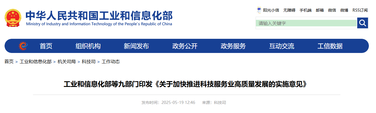 香港新聞網5月19日電 據中國工信部19日消息,日前,經中國國務院同意,工業和信息化部、國家發展改革委、教育部、科技部、財政部、市場監管總局、金融監管總局、國家知識產權局、中國科協日前聯合印發《關於加快推進科技服務業高質量發展的實施意見》,旨在壯大服務主體,優化發展生態,提升服務能力,實現規模增長和質效提升,加快科技成果轉化和產業化,有力支撐科技創新和產業創新融合發展。