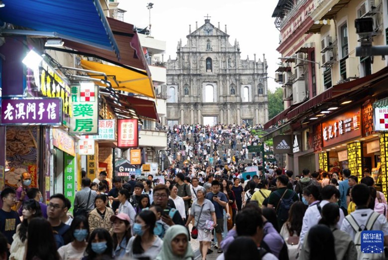 圖為遊客雲集的澳門大三巴。新華社資料圖