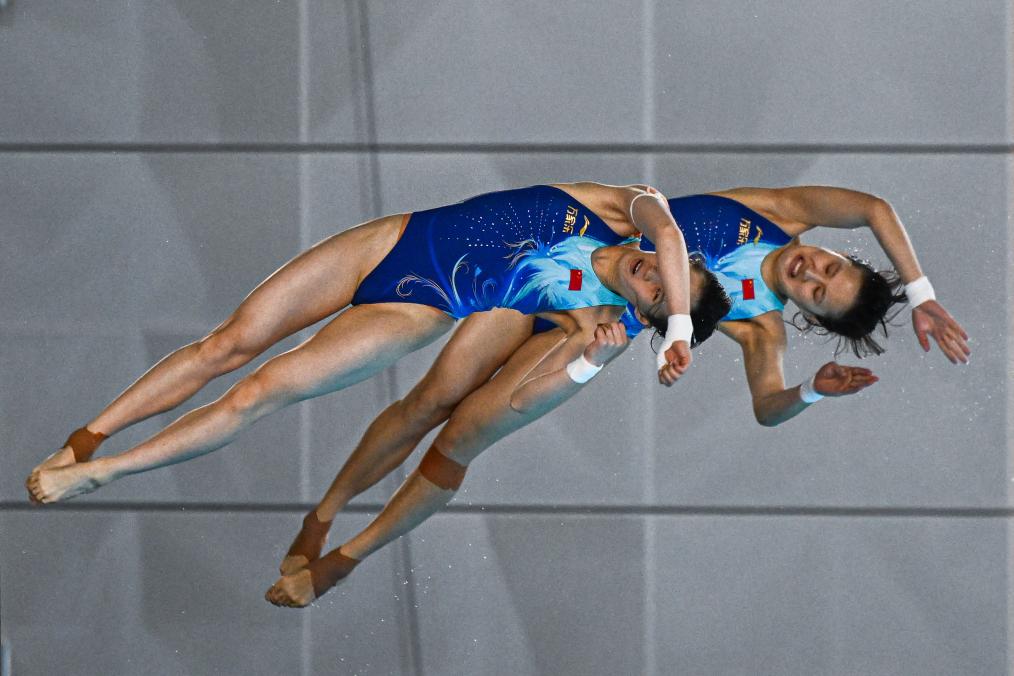 陳芋汐(前)/掌敏潔在比賽中。新華社記者杜子璇攝