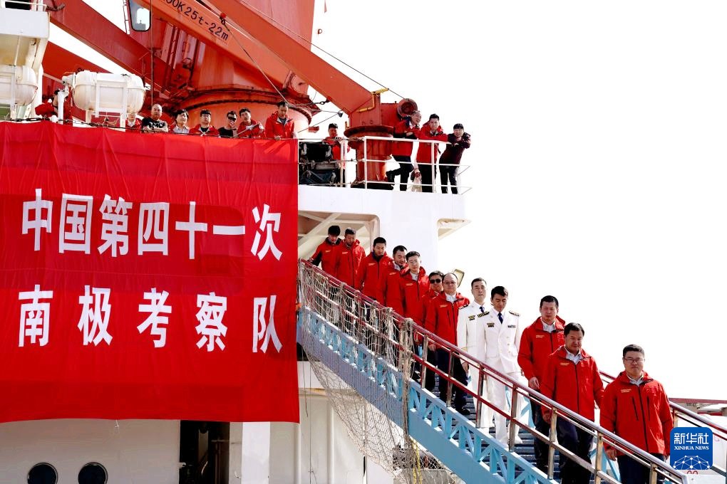 2025年4月8日,搭乘中國“雪龍”號破冰船的科學家凱旋歸來。新華社圖