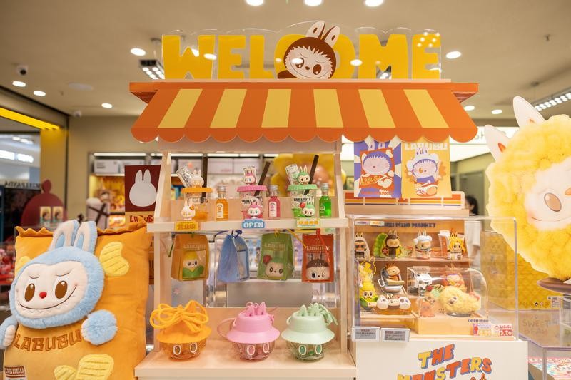 這是6月12日在浙江省溫嶺銀泰城的泡泡瑪特門店拍攝的LABUBU系列產品。圖片來源:新華社