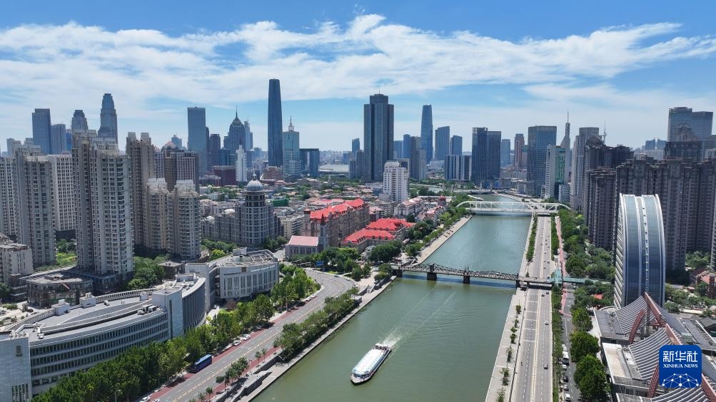 圖為一艘海河游船航行通過天津中心城區金湯橋水域。新華社資料圖