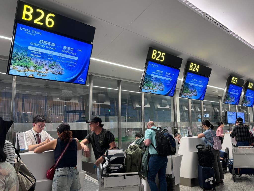 香港中通社7月3日電 近日,中國四川航空3U3785航班搭載120名旅客從成都天府國際機場起飛,於當地時間7月2日5時38分降落在塞舌爾國際機場。這標誌著成都直飛塞舌爾航線正式開通。