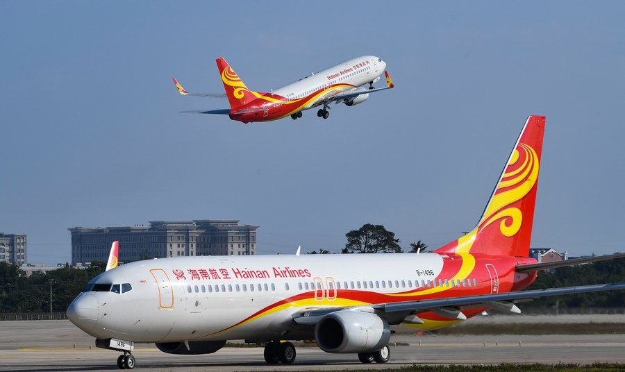 圖為一架海南航空班機在海口美蘭國際機場二期跑道起飛。新華社資料圖