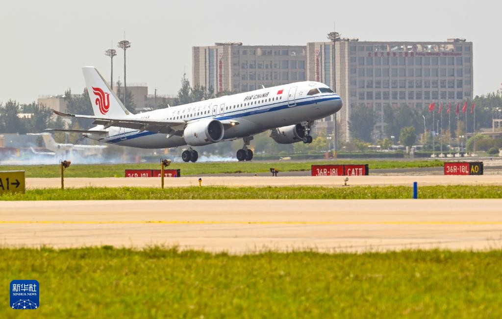 2024年8月29日,國航首架C919國產大飛機降落北京首都國際機場。新華社資料圖