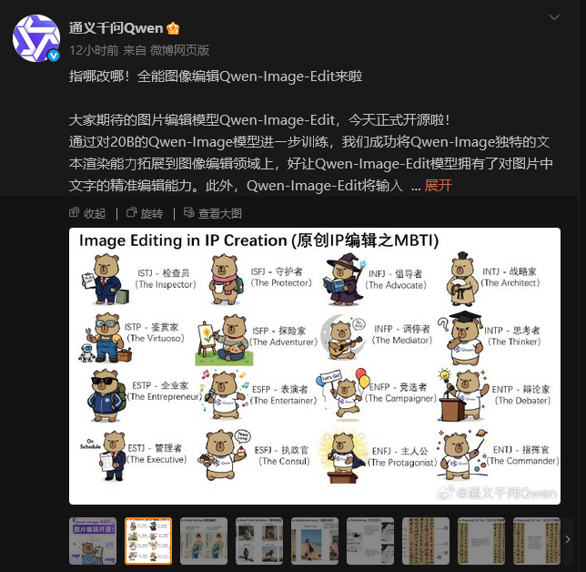 據介紹,Qwen-Image-Edit基於20B的Qwen-Image模型進一步訓練,將Qwen-Image的文本渲染能力延展至圖像編輯領域,實現了對圖片中文字的精準編輯。Qwen-Image-Edit的主要特性包括語義與外觀雙重編輯、精準文字編輯、強大的基準性能。