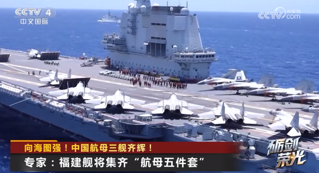 央視報道總結稱,從世界航母發展來看,一艘成熟的航母需具備制空、制海、預警,電子對抗及反潛等關鍵能力,支撐這些能力的核心艦載機體系被稱為“航母五件套”。其中包括隱身艦載戰鬥機、多用途彈射艦載戰鬥機、固定翼艦載預警機、固定翼電子戰機和反潛直升機。