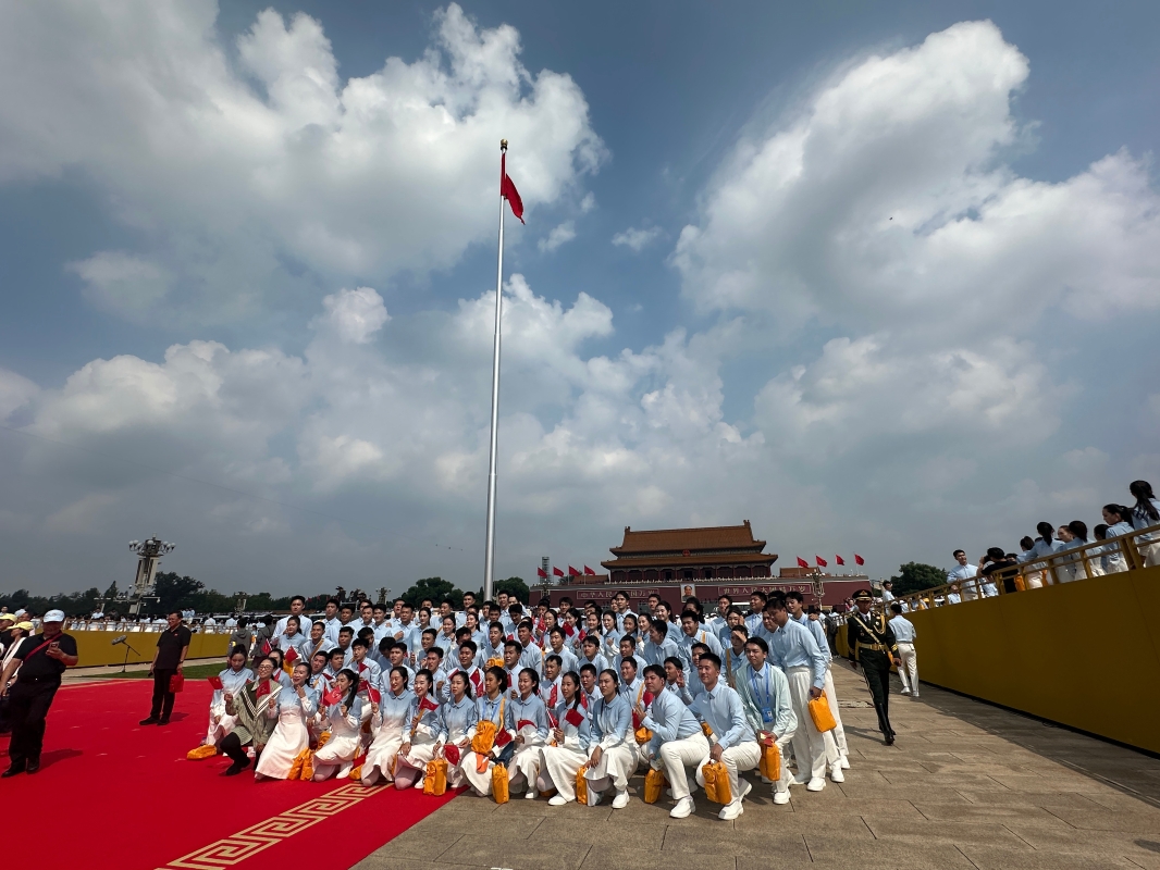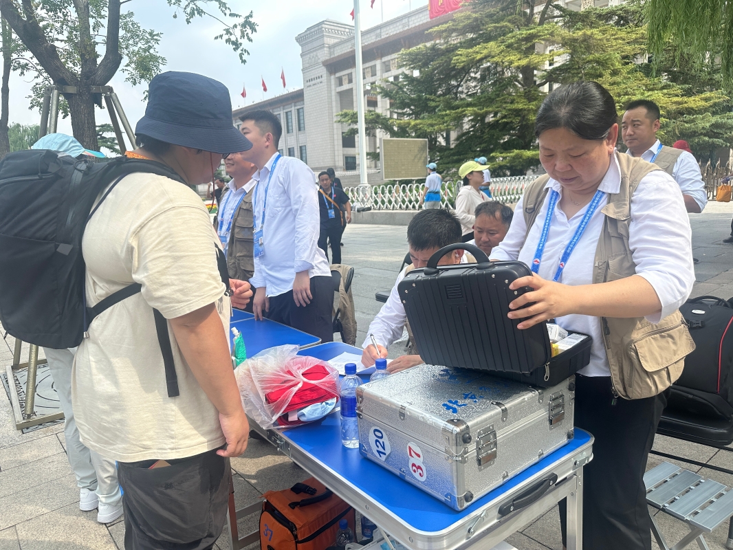北京當天高溫達32攝氏度,閱兵活動結束後沿路還設置了醫療站,提供解暑的藥物,附近也有志願者派發電解質飲料和瓶裝水,讓回程的觀眾能降溫解暑。(完)