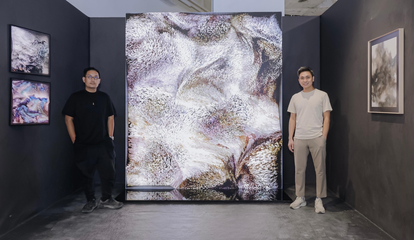 展覽同時展出_.WAV_Studio與邱榮豐共同創作的《人工智能山水圖——邱榮豐聯合創作特別版》影片裝置。作品靈感源自邱榮豐的原作《千迴02》,其畫面張力與《人工智能山水圖》系列所呈現的“動態質感”高度契合,仿佛是算法生成影像中凝固的一瞬,顯示傳統筆墨與數字生成藝術互相映照。