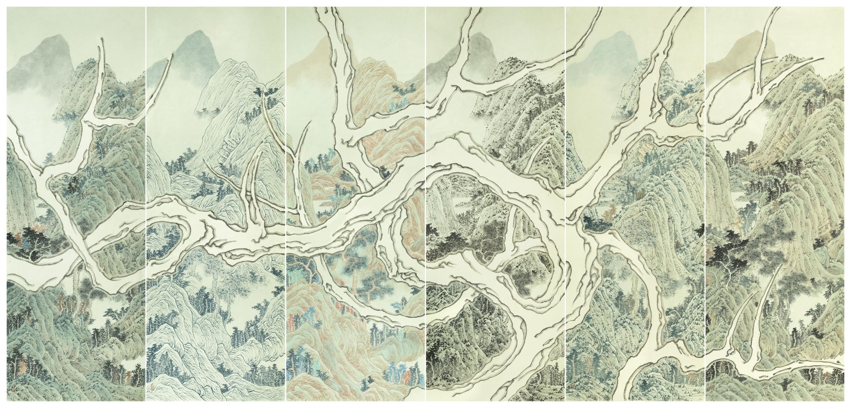 香港新聞網9月12日電 香港特區政府康樂及文化事務署(康文署)轄下藝術推廣辦事處與深圳市前沿藝穗藝術中心共同籌劃的大灣區藝術展覽系列“水墨異重奏”,第三場展覽“疊境雙生”,由9月12日至10月26日在廣州舉行,亦是第五屆粵港澳大灣區文化藝術節響應節目之一。香港藝術家邱榮豐以水墨為媒介,重塑傳統山水的境象,而另一個大灣區藝術家組合_.WAV_Studio_(曹雨西及劉曉江)通過數字技術,構建奇幻的山水世界。他們以不同媒介,打破傳統水墨藝術的時空和維度。
