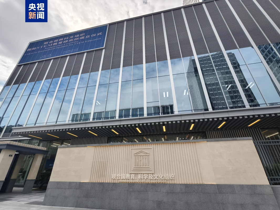 9月21日上午,聯合國教科文組織國際STEM教育研究所在上海正式成立。圖源:央視新聞