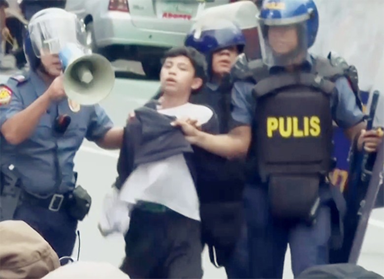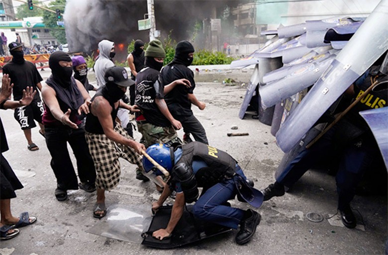 據美聯社報道,馬尼拉警方稱,當天有約100名抗議者進行了持續數小時的暴力活動,他們手持棍棒,在牆上隨意噴塗塗鴉、推倒鋼柱、打碎玻璃,還洗劫了一家經濟型酒店的大堂,造成數十名馬尼拉執法人員受傷。警方使用催淚瓦斯驅散攻擊者後,在全市範圍內采取逮捕行動。