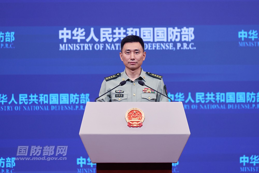 9月25日下午,中國國防部舉行例行記者會,國防部新聞發言人張曉剛大校發布消息。圖源:國防部