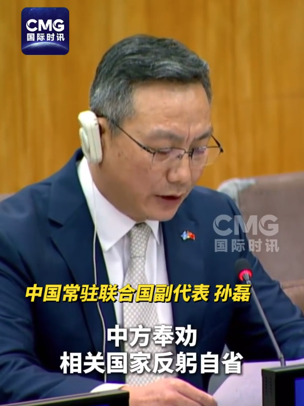 CCTV國際時訊報道,孫磊大使指出,這幾個代表團再次濫用聯大三委平台,借涉疆、涉港、涉藏等問題抹黑中方,干擾國際人權對話合作,中方對此強烈不滿、堅決反對。中國反對將人權問題政治化、武器化,反對以人權為藉口干涉別國內政。要求相關國家停止“麥克風外交”,停止混淆是非、摒棄雙重標準,回到對話與合作的正確軌道上來。
