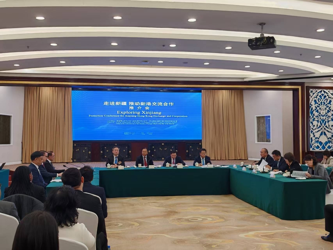 香港特區政府商務及經濟發展局副局長陳百里、科威特駐港總領事納賽爾、香港瑞士商會聯席主席盛勛文、太古集團公共事務董事唐偉邦在發言中表示,新疆區位優勢明顯,經濟增長潛力巨大,期待與新疆拓展交流合作。