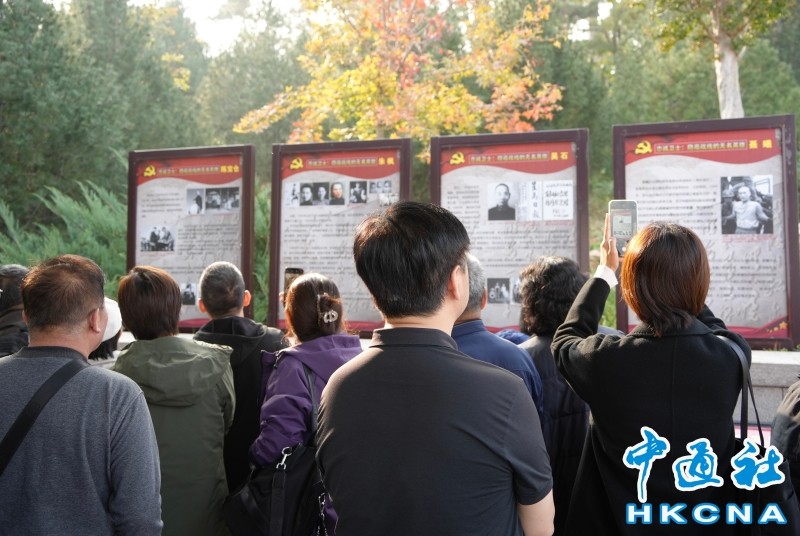 10月25日,北京西山無名英雄紀念廣場。民眾在瞻仰陳寶倉、朱楓、吳石、聶曦四位烈士事跡。 香港中通社圖片