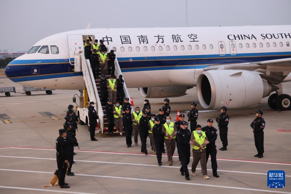 資料圖:2025年2月20日,緬甸妙瓦底地區的中國籍涉詐犯罪嫌疑人,經泰國被中國公安機關押解回國。(圖源:新華社)