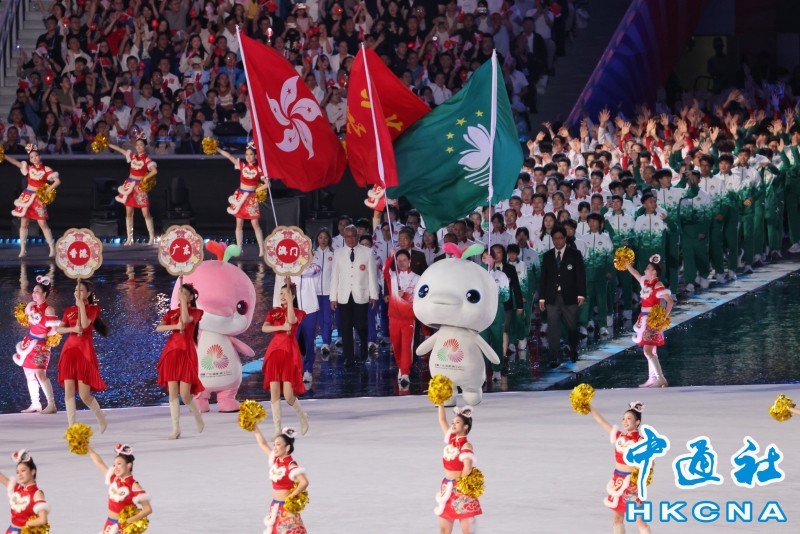 11月9日,全運會開幕式,粵港澳代表團同時入場。香港中通社圖片