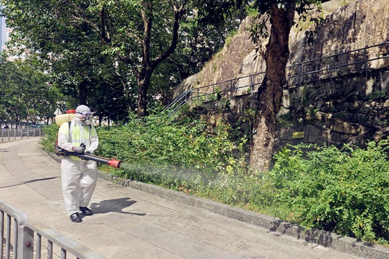圖為香港食環署承辦商人員於2025年10月26日在鳳德邨附近使用大型機械超低微量噴灑器,以霧化處理方式殺滅成蚊。香港特區政府官網資料圖