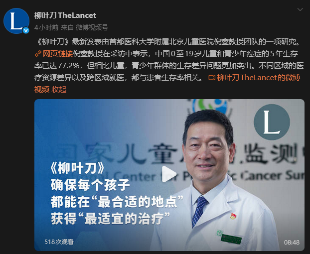 圖源:“柳葉刀”微博賬號截圖