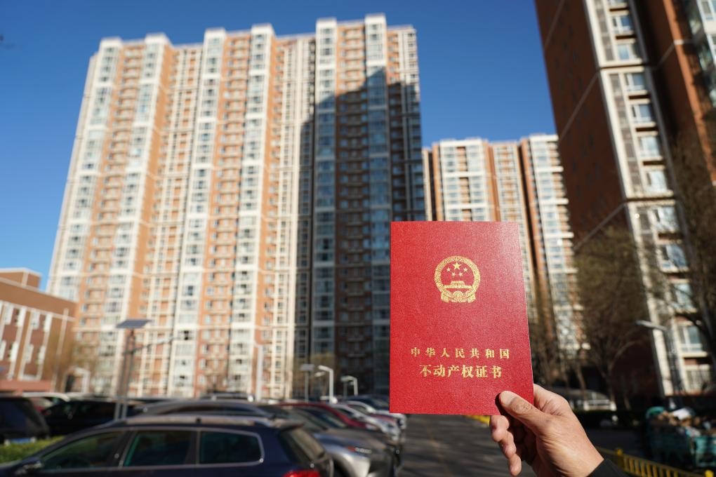 資料圖:一名北京市西城區京鐵和園社區的居民展示新辦理的不動產權證書(新華社圖片)