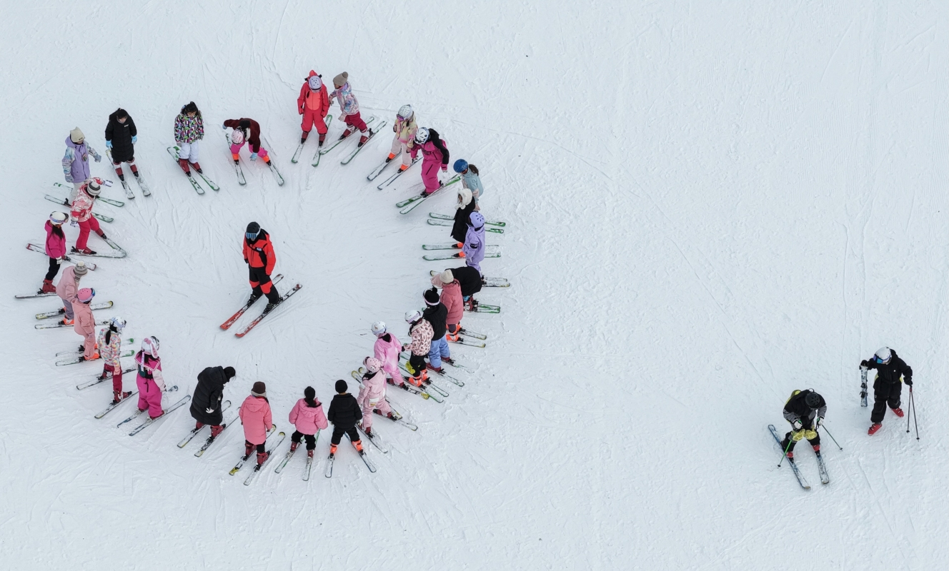 阿勒泰中學生戶外體育課就是來到5S級將軍山滑雪場學習滑雪