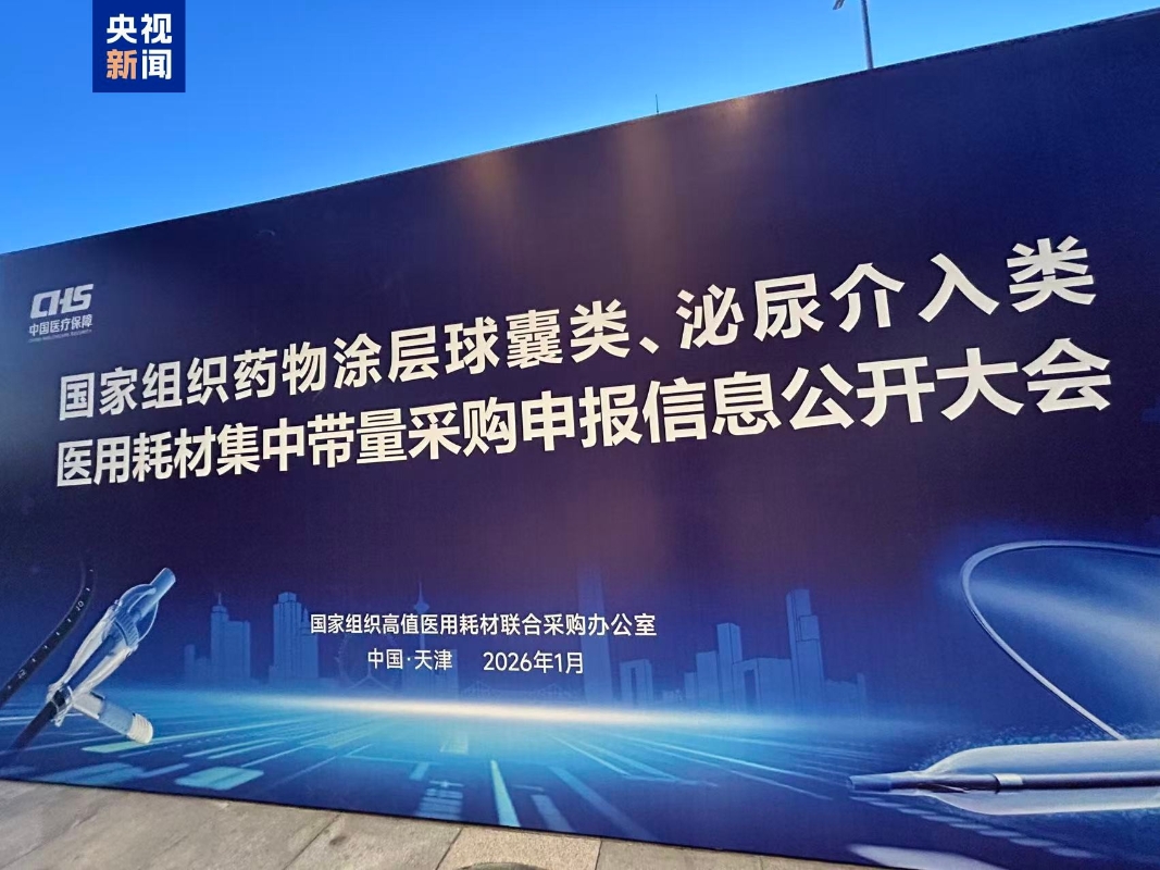 1月13日,第六批國家組織高值醫用耗材集中帶量採購在天津開標 圖源:央視新聞