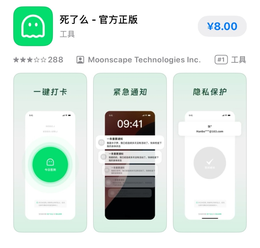 綜合消息,該App由三名95後開發者以不到1500元人民幣的成本、一個月時間打造,憑藉每日簽到+48小時未簽自動郵件通知緊急聯絡人的極簡設計,精準戳中獨居青年的安全焦慮,上架後日均新增用戶暴增500倍,估值迅速攀升至數千萬元。
