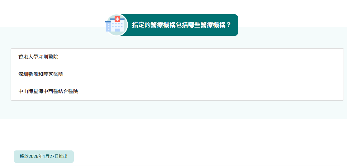 上述醫療機構亦包括深圳新風和睦家醫院和中山陳星海中西醫結合醫院。