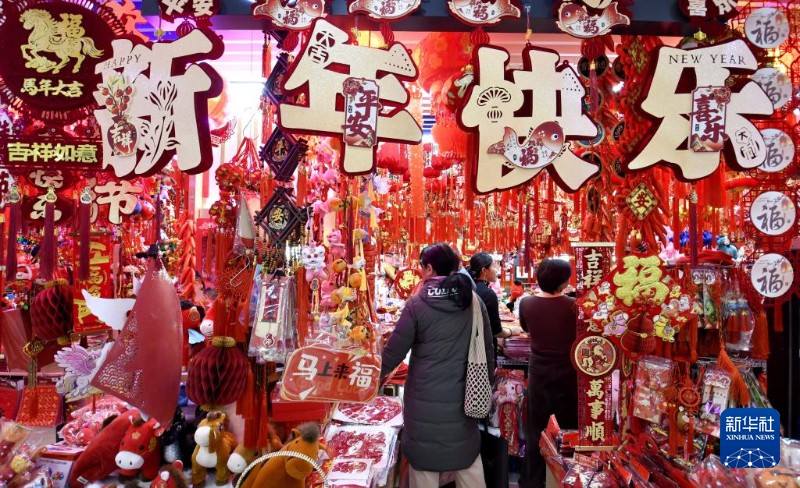 1月31日,北京市民在朝陽區天豐利商場內購買春節裝飾品(圖源:新華社)