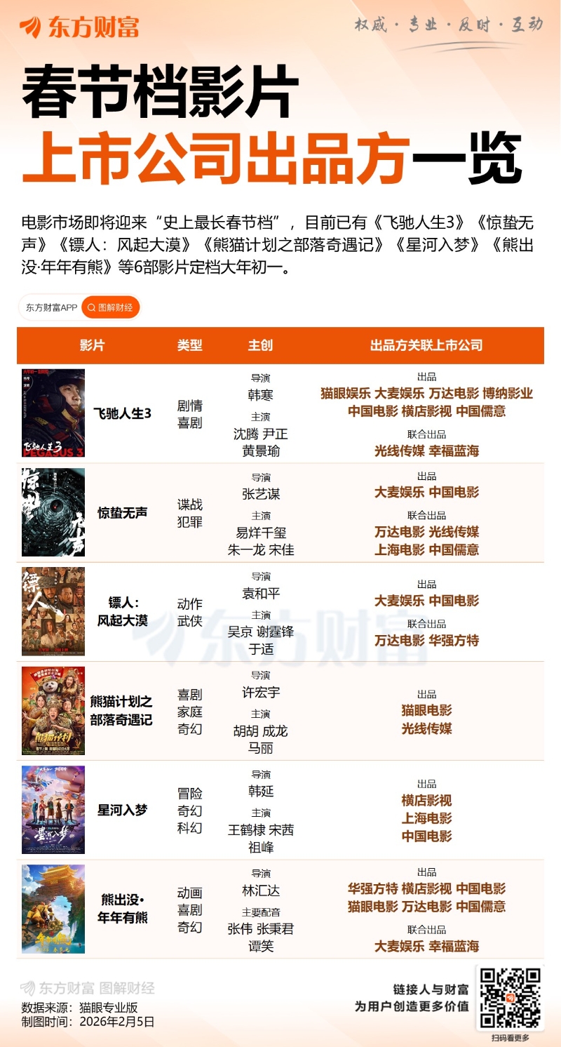 2026年中國內地春節檔影片。(圖源:東方財富)