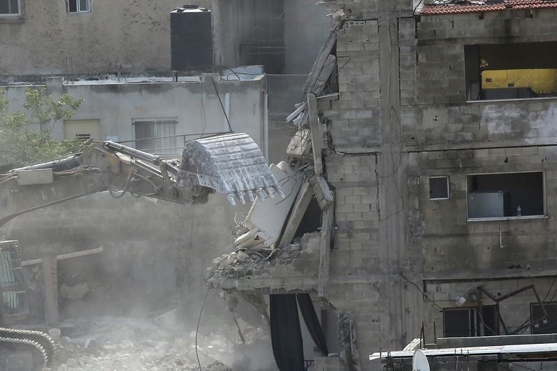 2025年12月31日,在約旦河西岸圖勒凱爾姆地區的努爾沙姆斯難民營,以色列挖掘機拆除巴勒斯坦居民的房屋。圖片來源:新華社