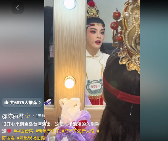 香港中通社3月1日電(香港中通社記者 吳一帆)浙江小百花越劇團青年演員陳麗君在社交平台發布了一條短視頻,她在短視頻裡俏皮地說:“阿育婭沒有去長安,但是要去台灣了。”以此宣傳“小百花”2026年春節期間赴台灣巡演。這次由陳麗君擔當主演的巡演行程,距離“小百花”上一次赴台演出,整整有16年。而短視頻裡這句話,也透露了中國國家級藝術獎項“文華獎”得主、中國一級演員陳麗君今年春節期間的行程。