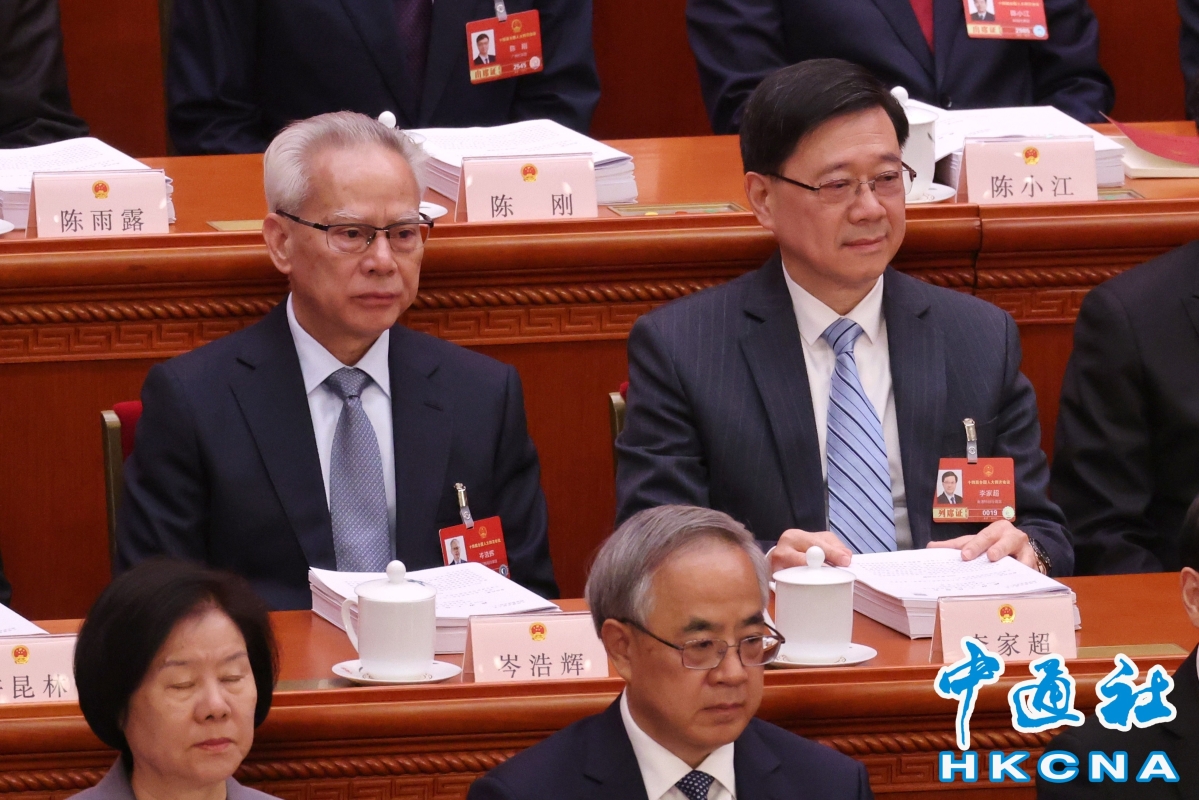 李家超表示,現場聽取政府工作報告,倍感鼓舞、振奮人心。報告指出支持香港更好融入和服務國家發展大局,發揮香港背靠祖國、聯通世界獨特優勢和重要作用,促進香港長期繁榮穩定。