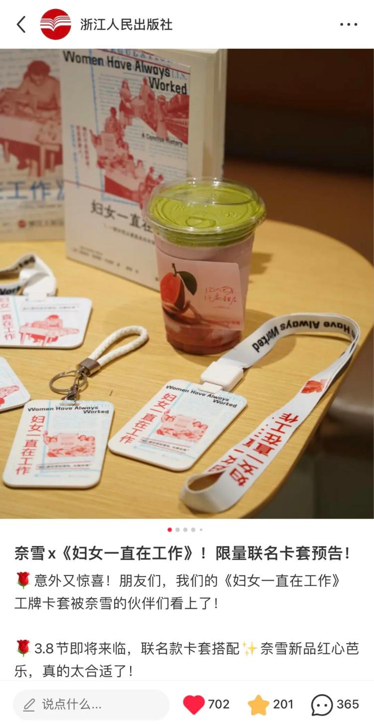 結果,今天三八節,這部美國史學巨擘寫的女性工資勞動奮鬥史,居然在中國,因為出了款「婦女節聯名奶茶文創套餐」,火了!