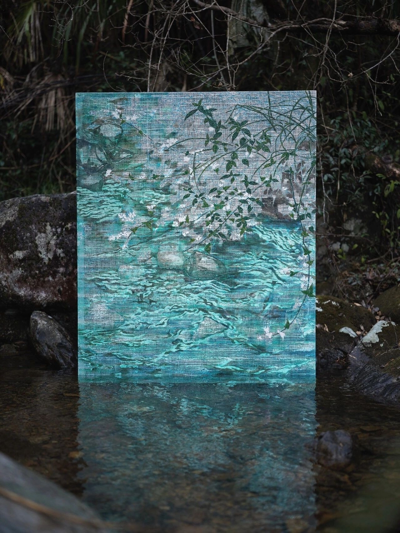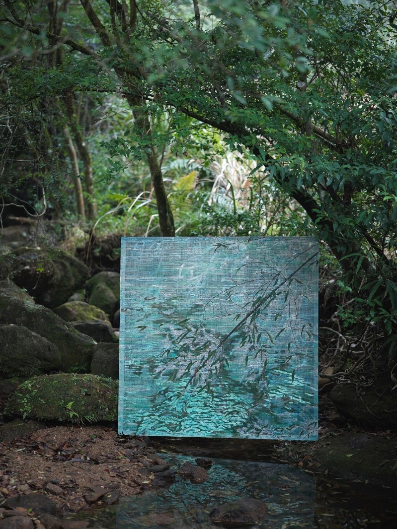 對吳觀真而言,創作是讓身體重新回到山林、水氣與風聲之中,在反覆往返與凝視之間,確認自身與故土的連結。水波的蕩漾、林間的幽微,時間在漆層中緩慢沉積。“如植”,是一種在時間中緩慢生長的姿態,是藝術家與土地、與家人、與記憶之間柔軟而真切的生命羈絆。